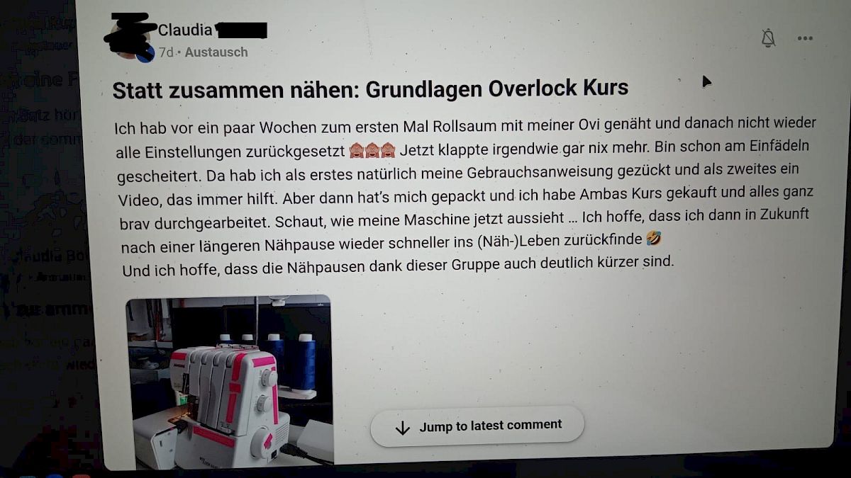 "Ich hätte mich nie allein an die Overlock gewagt. Jetzt sitzt mein Kleid perfekt und ich hab richtig Spaß dran!"